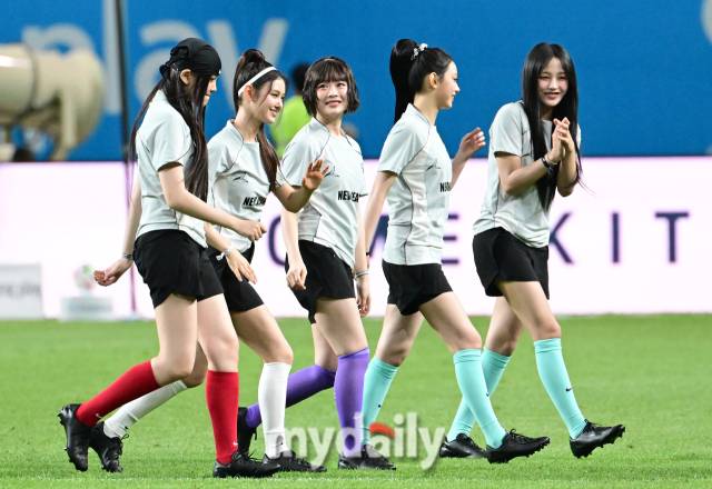 [마이데일리 = 유진형 기자] 3일 서울월드컵경기장에서 '쿠팡플레이시리즈 2경기, FC 바이에른 뮌헨과 토트넘 홋스퍼'의 경기가 열렸다. 경기 전 뉴진스가 시축을 위해 인사하고 있다.