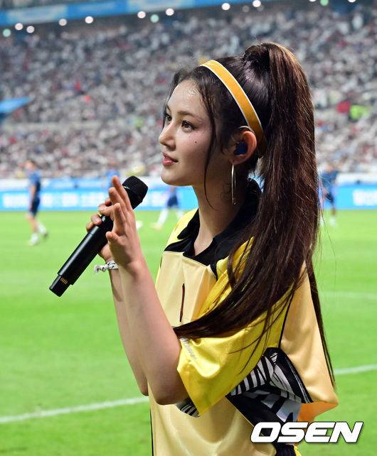 뉴진스 다니엘이 하프타임 공연을 마친 후 경기장을 빠져나가고 있다. 2024.08.03 /cej@osen.co.kr