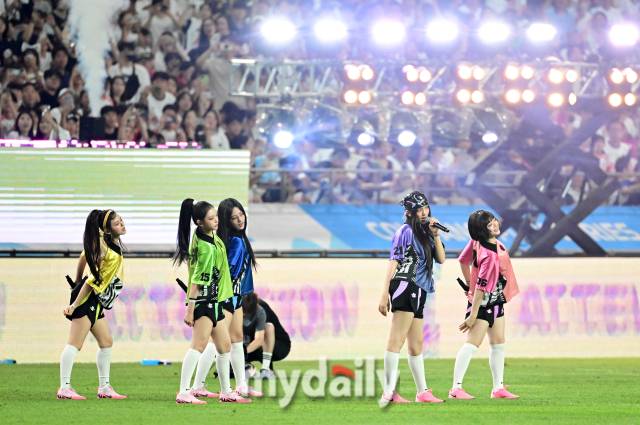 [마이데일리 = 유진형 기자] 3일 서울월드컵경기장에서 '쿠팡플레이시리즈 2경기, FC 바이에른 뮌헨과 토트넘 홋스퍼'의 경기가 열렸다. 뉴진스가 하프타임 쇼를 하고 있다.