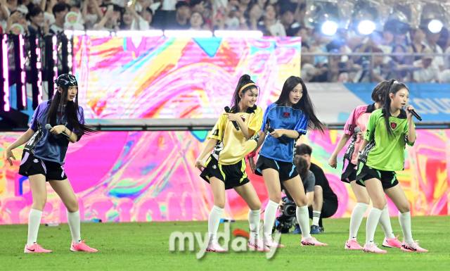 [마이데일리 = 유진형 기자] 3일 서울월드컵경기장에서 '쿠팡플레이시리즈 2경기, FC 바이에른 뮌헨과 토트넘 홋스퍼'의 경기가 열렸다. 뉴진스가 하프타임 쇼를 하고 있다.