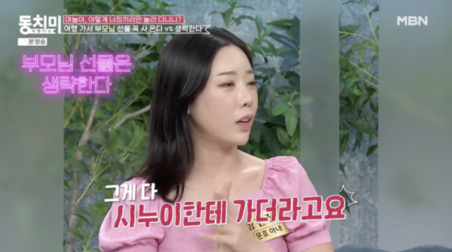 또한 성민정은 시어머니에게 준 선물이 시누이에게 간 적도 있다고. 성민정은 “제가 일본 여행을 갔다가 오픈런을 해서 지갑을 하나 샀다. 저희 친정엄마 것도 안 사고, 시어머니만 드렸다. 근데 결국은 시누이 손에 가 있더라”며 서운함을 고백했다.