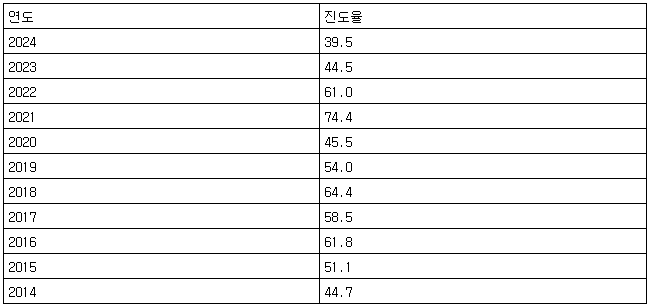 [표] 6월 기준 법인세 진도율(단위: %)