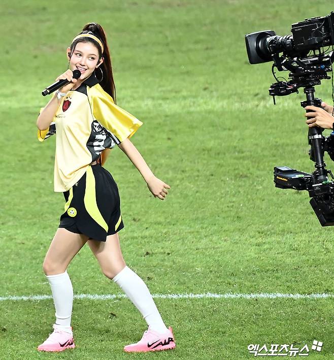 (엑스포츠뉴스 서울월드컵경기장, 김한준 기자) 3일 오후 서울월드컵경기장에서 열린 '2024 쿠팡플레이 시리즈' 토트넘 홋스퍼와 바이에른 뮌헨의 경기, 하프타임때 걸그룹 뉴진스 다니엘이 멋진 공연을 선보이고 있다.