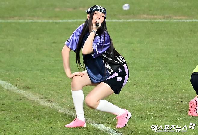 (엑스포츠뉴스 서울월드컵경기장, 김한준 기자) 3일 오후 서울월드컵경기장에서 열린 '2024 쿠팡플레이 시리즈' 토트넘 홋스퍼와 바이에른 뮌헨의 경기, 하프타임때 걸그룹 뉴진스 혜인이 멋진 공연을 선보이고 있다.