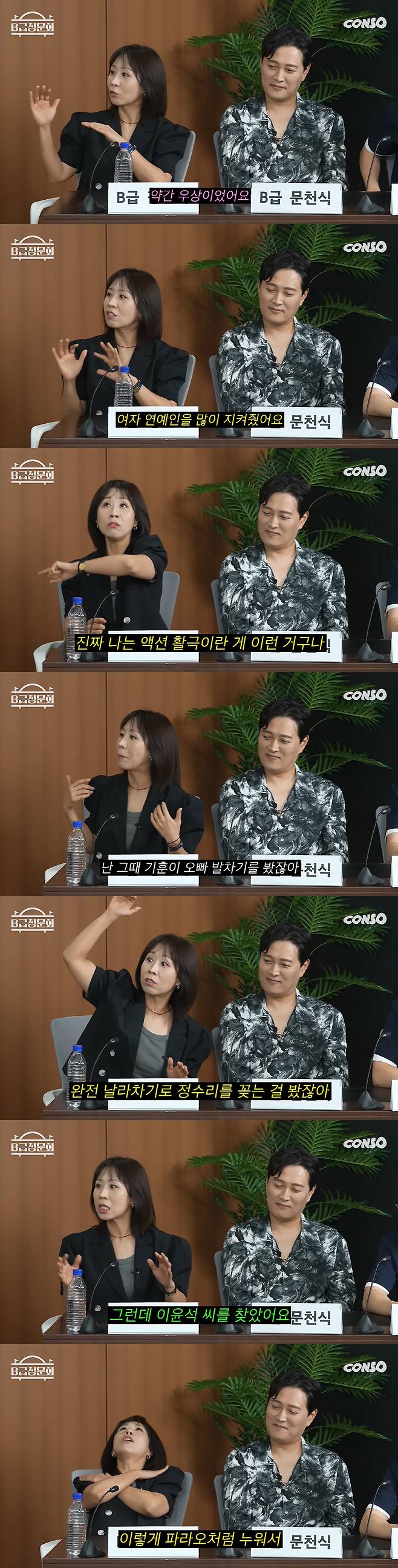 이어 "진짜 나는 액션 활극이란 게 이런 거구나 싶었다. 날라 다니더라. 그때 기훈이 오빠 발차기를 봤다. 날라차기로 정수리를 꽂는 것을 봤다. 그리고 갑자기 모든 상황이 악화되면서 거기서 조직원들이 더 오게 된 거다. 우리가 축제 차량에 타고 도망을 가야했다"라며 위험천만했던 당시를 이야기해 모두를 놀라게 했다.