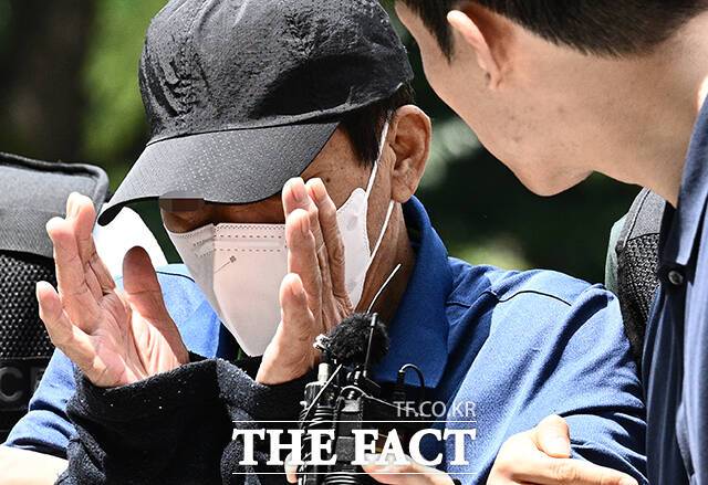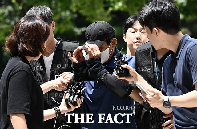 [더팩트ㅣ박헌우 기자] 숭례문 인근 지하보도에서 청소 노동자를 흉기로 살해한 혐의를 받는 A 씨가 4일 오후 서울 서초구 서울중앙지방법원에서 열린 구속 전 피의자 심문(영장실질심사)을 받기 위해 출석하고 있다.