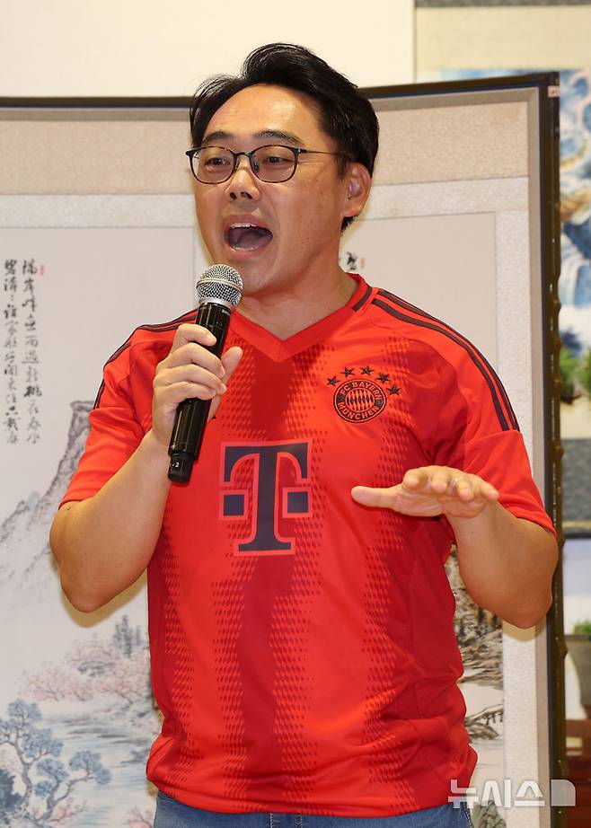 [서울=뉴시스] 이영환 기자 = 피터 곽 아디다스코리아 대표이사가 4일 오후 서울 강남구 아디다스 강남브랜드센터에서 열린 FC 바이에른 뮌헨 방한 기념 이벤트에서 인사말을 하고 있다. 2024.08.04. 20hwan@newsis.com
