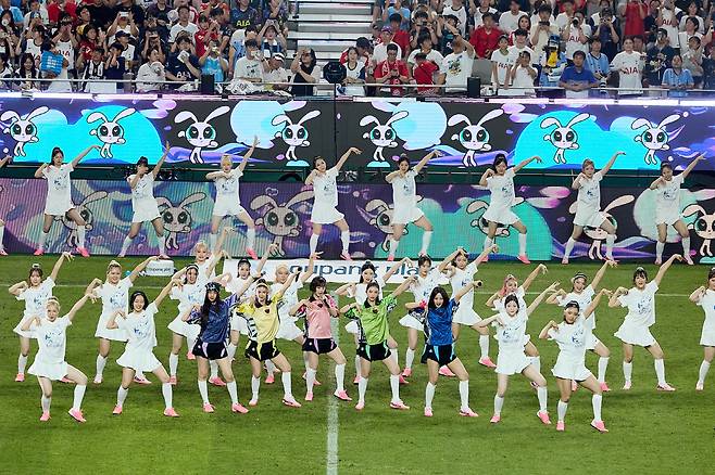 뉴진스는 이날 'Attention'과 'Hype Boy', 'ETA', 'Super Shy' 등 히트곡 퍼레이드를 펼쳐 상암벌을 들썩이게 했다. 축구팬뿐 아니라 남녀노소 누구나 알고 있는 메가 히트곡의 힘은 강력했다. 대형 스타디움은 함성으로 가득 찼고, 청량감 가득한 이들의 노래는 한여름 밤 무더위를 날려버리기 충분했다.