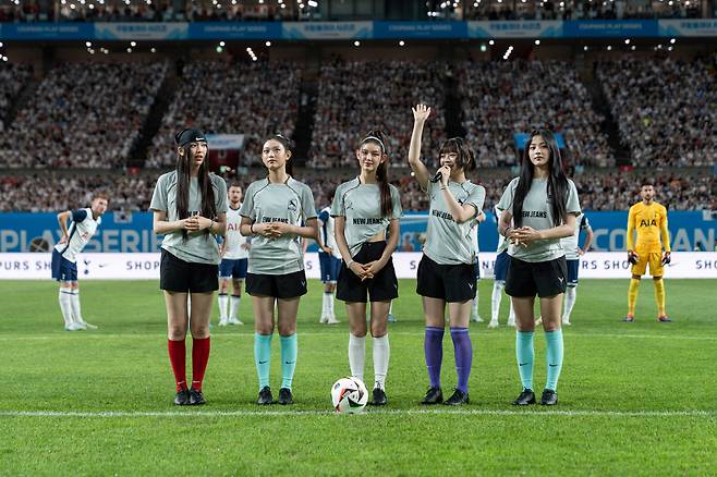 뉴진스(민지, 하니, 다니엘, 해린, 혜인)는 지난 3일 오후 8시 서울월드컵경기장에서 열린 '2024 쿠팡플레이 시리즈' 바이에른 뮌헨 대 토트넘 홋스퍼 경기 하프타임 쇼를 장식했다. 이 경기는 한국에서 처음 선보인 빅 매치인데다 손흥민(토트넘)과 김민재(뮌헨)의 맞대결로 관심을 모으며 일찌감치 전석 매진됐다.