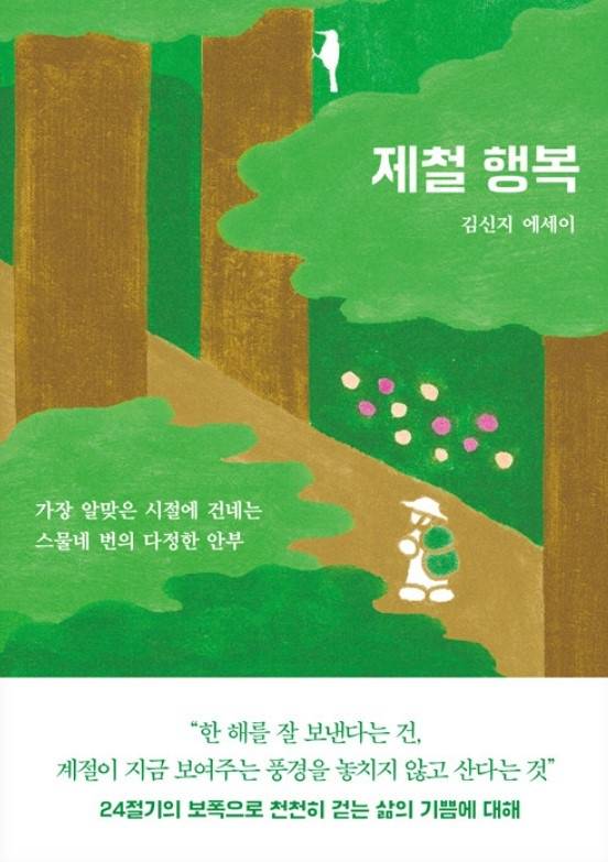 '제철 행복(인플루엔셜)'은 "모두가 고단하게 살아가는 와중에 틈틈이 행복을 느낄 수 있길" 바랐던 작가 김신지가 제철 감각을 키우는 방법을 소개한 책이다. 이를테면 우수(雨水)에는 "이른 봄나물을 찾아 먹는 것으로 봄이 온 것을 기념"하고, 하지에는 햇감자로 만든 음식과 맥주를 맛보고, 밤 산책이 제철인 추분(秋分)에는 고궁의 달빛기행이나 별빛야행 일정을 알아보라는 것이다.