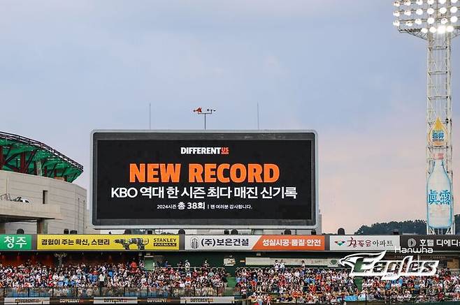 한화는 3일 대전 한화생명이글스파크에서 열린 KIA와 경기에서 3-7로 졌다. 이날도 팬들은 경기장을 가득 채우며 역대 최다인 37경기 홈경기 매진 기록을 세웠지만 한화는 상승세를 이어가지 못했다. 7연승을 달렸던 한화는 이날 패배로 아쉽게 연승행진을 중단하게 됐다. 4일 경기는 우천으로 취소돼 한화는 이날과 함께 월요일까지 휴식할 수 있게 됐다.