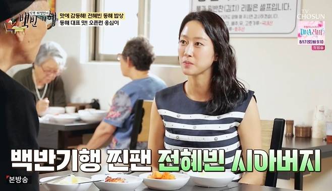 4일 방송된 TV조선 '식객 허영만의 백반기행'(이하 '백반기행')에는 여름휴가 특집으로 전혜빈이 출연했다.