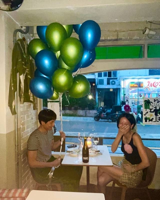 김나영은 생일을 맞은 마이큐와 레스토랑에서 와인을 마시며 생일파티를 하고 있는 모습이다. 김나영은 생일케이크에 초를 꽂으며 미소 짓고 있고, 마이큐는 풍선다발을 들고 생일을 만끽하고 있다.