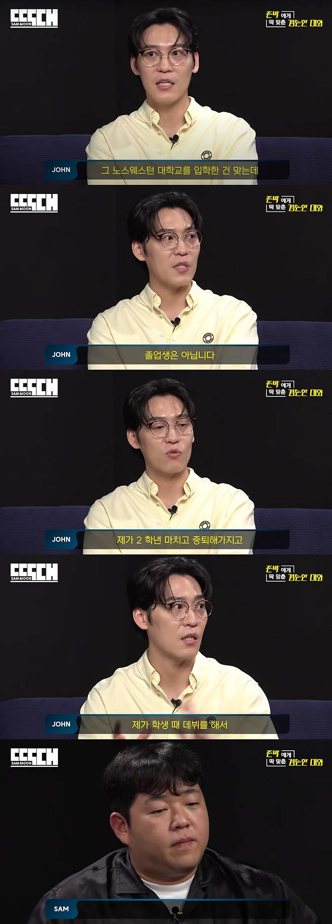 샘문은 "존박이 대단한 게 있다. 바로 세계 11위에 달하는 글로벌 명문대학 노스웨스턴 대학교 졸업생이라는 거다"라며 존박의 학력을 칭찬했다.