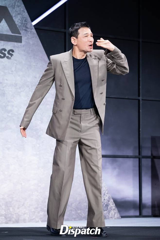 황정민은 그레이 수트로 멋을 냈다.