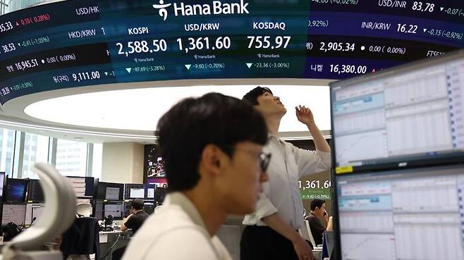 현대차(-5.94%), 기아(-6.63%), KB금융(-6.49%), 신한지주(-7.18%), HD현대중공업(-10.53%), LG전자(-6.16%), HD한국조선해양(-11.97%) 등도 급락하고 있습니다.