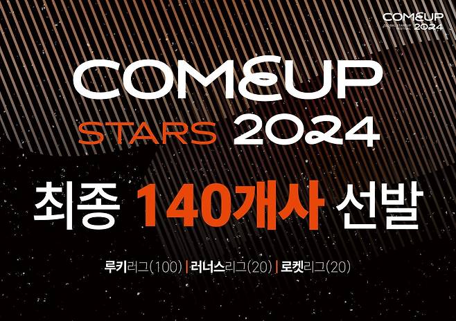 컴업스타즈는 컴업이 매년 선보이는 혁신기업이다. 올해는 글로벌 저변 확장과 초기 스타트업 지원 강화, 창업 분위기 조성 등을 목표로 6월 3일부터 7월 5일까지 한 달 간 전세계 유망 스타트업을 모집했다. 선발 대상인 러너스리그 20팀과 루키리그 100개사 모집에 역대 최대 규모인 1,208개사가 지원하며 뜨거운 관심을 보였고, 로켓리그 20사는 컴업 자문위원회와 국내외 투자사가 참여한 컴업 하우스의 추천으로 초청해 총 140개 스타트업의 명단을 확정했다.