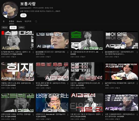 이렇듯 "세상 모든 노래를, 내 목소리로 들려줄" 수 있는 꿈을 실현해줄 수 있는 가수는 전에도 없었고 후에도 없겠지만, AI 기술로 그 꿈을 실현하게 해주는 유튜버들이 있다. 오늘 꼭 소개하고 싶은 유튜버는, 이미 1996년에 사망한 김광석의 목소리로 세상 모든 노래를 들려주려는 '보통사람'(구독자 5330명), 'AI음유시인(2320명)'이다.