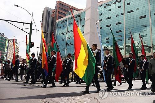 epa11528733 Students from different schools parade on the eve of the 199th anniversary of the Bolivia Independence in La Paz, Bolivia, 05 August 2024. Hundreds of students and different authorities participated in different acts ahead of the Independence Day celebrated annually on 06 August which commemorates the signing of the Declaration of Independence in 1825. EPA/LUIS GANDARILLAS