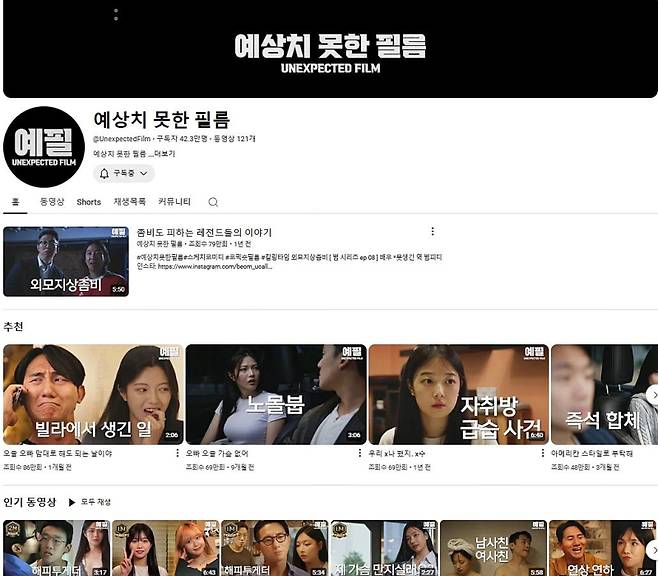 끝날 때까지 끝난 게 아니다. 배우들의 티키타카를 따라가다 예상치 못한 전개에 웃음이 빵빵 터진다. 최근 구독자가 급상승한 유튜브 채널 ‘예필’(이하 ‘예필’)의 이야기다.