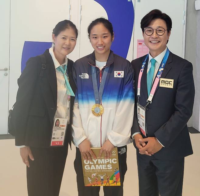 방수현 MBC 올림픽 해설위원이 배드민턴 여자 단식 금메달을 목에 건 안세영 선수를 보고 감격했다.