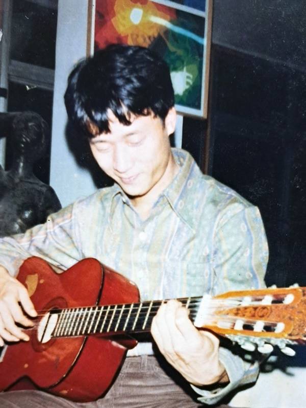 | ▲ 1979년 겨울, 익산 중앙동의 어느 화실에서 노래를 부르던 김민기 대표의 모습 |