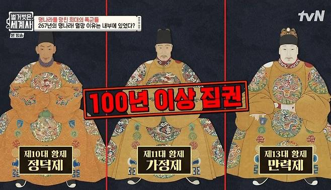 6일 방송된 tvN '벌거벗은 세계사'에서는 명나라의 위기를 부른 세 폭군들에 대해 알아봤다.
