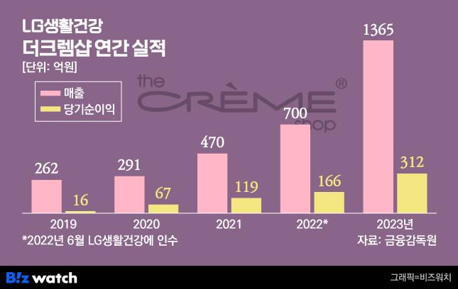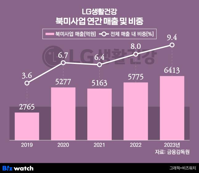 실제로 더크렘샵은 LG생활건강에 인수된 이후 폭발적으로 성장하고 있다. 2021년 470억원이었던 더크렘샵의 매출액은 LG생활건강에 인수된 2022년 700억원, 이듬해인 2023년에는 1365억원으로 치솟았다. 덕분에 LG생활건강의 북미 매출도 큰 폭으로 성장했다. 2022년과 2023년 LG생활건강의 북미 매출은 전년 대비 각각 11.9%, 11.0%씩 늘었다. 전체 매출 중 북미사업이 차지하는 비중도 2021년 6.4%에서 2022년 8.0%, 2023년 9.4%로 올랐다.