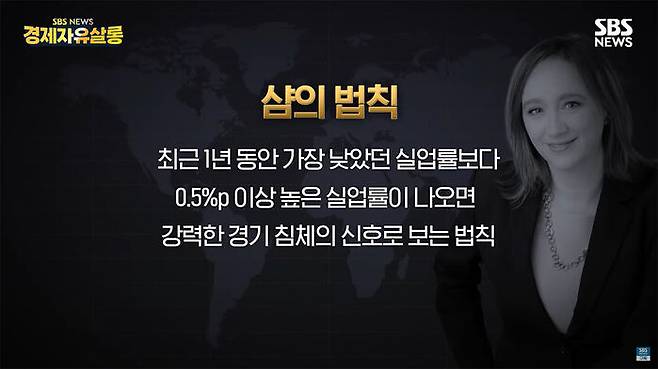 왜냐하면 실업률이라고 하는 거는 굉장히 후행 지표거든요. 예를 들어서 미국처럼 노동시장이 유연한 나라도 한 번 노동자를 고용했다가 자르는 거는 쉬운 일이 아니거든요. 그래서 기업 입장에서는 사람을 고용할 때도 경기가 좋은가 나쁜가 긴가민가할 때는 고용을 안 하고요. 경기가 충분히 좋아진 다음에 고용을 하고요. 해고할 때도 마찬가지입니다. 경기가 아주 나빠지고 못 견뎌야 해고를 하니까 고용은 상당한 후행 지표죠. 그래서 고용 지표가 만약에 나빠진다 그러면 상당히 경기 침체는 많이 진행이 됐을 가능성이 높기 때문에 샴의 법칙이 맞아떨어질 가능성이 되게 높거든요.