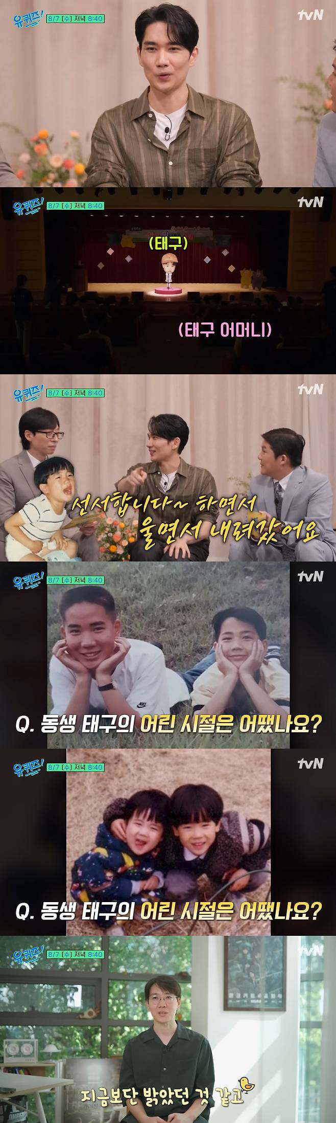 엄태화는 동생 엄태구의 어린 시절에 대해 "저도 기억이 가물가물하다. 지금보다는 밝았던 것 같다. 그때는 말을 되게 잘했던 것 같다"라고 전한다.