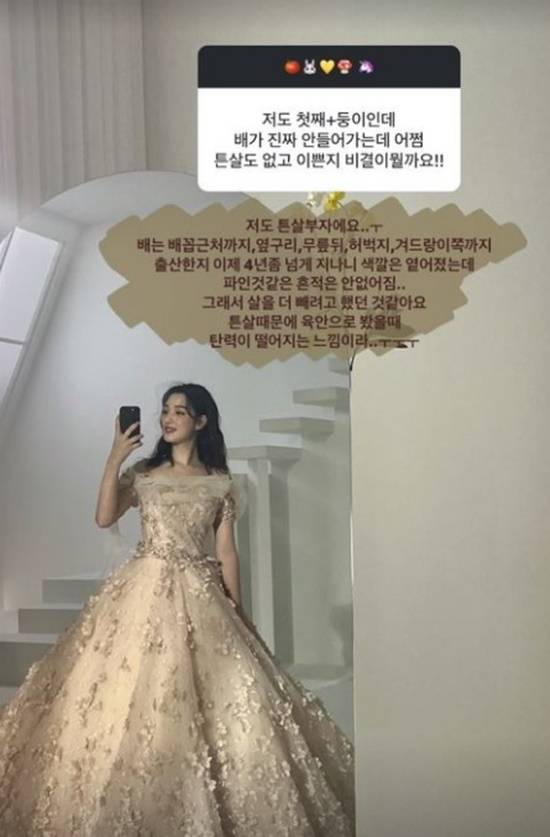 율희는 '저도 첫째와 쌍둥이가 있는데 배가 진짜 안 들어간다. 어쩌면 이렇게 튼살도 없고 예쁜지, 비결이 궁금하다'는 누리꾼의 물음에 "저도 튼살부자다"라고 답했다.