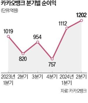 인터넷전문은행 카카오뱅크가 지난 2분기 1200억원 넘는 순이익을 내며 역대 최대 실적 기록을 갈아치웠다.