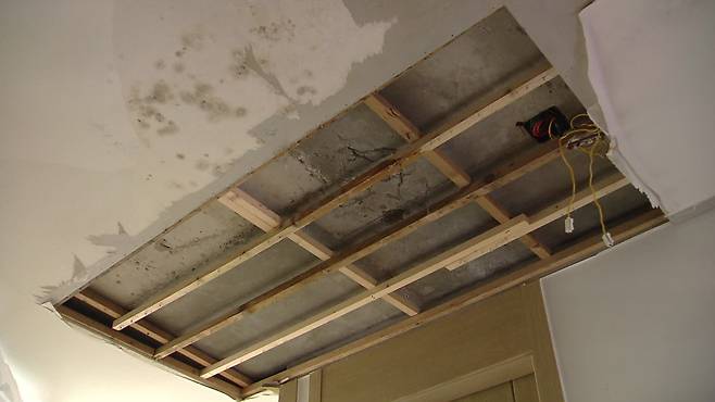'곰팡이 집'을 견디다 못한 A 씨는 자신의 돈으로 먼저 공사를 진행했습니다. 천장에 시멘트를 덧대고, 벽지까지 새로 시공했습니다.