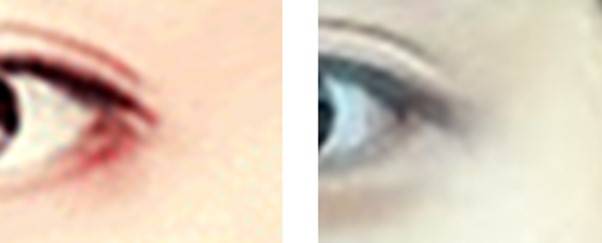 눈꼬리를 내려 예뻐진 듯 보이는 광고 사진들에서, 손으로 눈꼬리를 가리고 비교해 보면 알 수 있습니다. 눈꼬리와 상관없이 예뻐진 눈이라는 것을. 때론, 수술 후 사진만 서클렌즈를 끼고 찍은 광고가 보이기도 합니다. 심지어 수술 후 사진에서만 눈이 충혈되어 있기도 합니다. 눈꼬리를 내려서 눈에 문제가 생긴 것으로 의심할 수 있는 모습입니다.