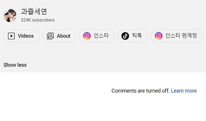 BJ과즙세연이 운영 중인 채널의 댓글 기능을 중단했다.