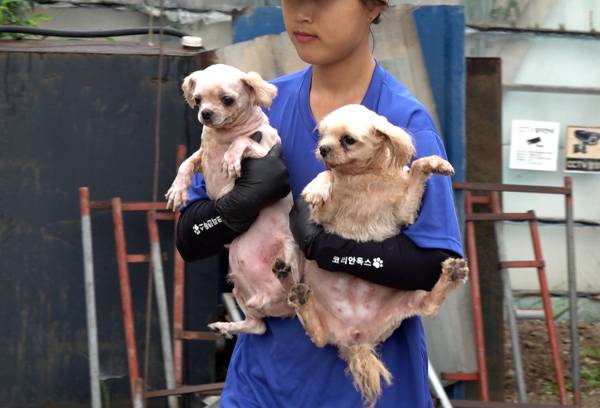 집중호우가 남부지방을 덮친 지난달 10일. 전남 함평의 시골 마을에 동물단체 활동가와 군청 직원 10여명이 찾아왔습니다. 비좁은 오솔길을 따라 걷던 이들의 발길이 멎은 곳은 외딴곳에 숨어있는 무허가 비닐하우스. 안에 들어서자 지독한 배설물 냄새를 풍기는 20여개의 철창이 양 옆으로 나란히 늘어서 있습니다. 철창 안에는 푸들, 말티즈, 시츄 같은 5㎏도 채 되지 않는 소형 품종견들이 서너 마리씩 갇힌 채 울부짖고 있었습니다. 모두 66마리였습니다.