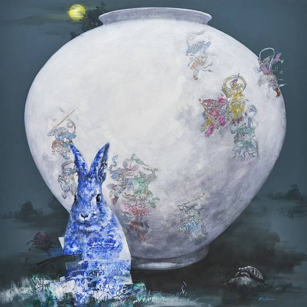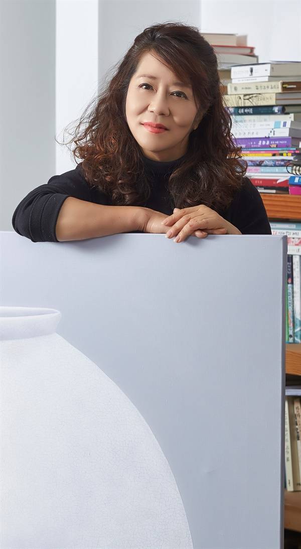 달항아리가 가진 에너지의 파장을 통해 심리적 안정과 정서를 보듬는 색채 심리의 무의식적 치유의 모티프를 평면으로 형상화하였다. 달항아리의 이미지를 회화로 이행시키는 작업은 형태적 특징보다는 항아리 본연의 감성적 이미지 표현에 주안점을 두었다.