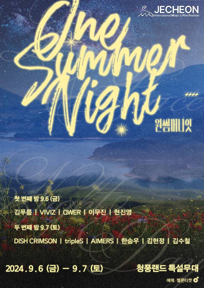 한편, '원 썸머 나잇' 공연 티켓은 9일 오후 2시부터 구매할 수 있으며, 제20회 제천국제음악영화제는 오는 9월 5일부터 10일까지 제천시 일대에서 열릴 예정이다.