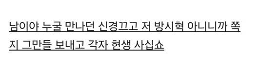 결국 과즙세연 방송 회장이 직접 "남이야 누굴 만나던 신경 끄고 저 방시혁 아니니까 쪽지 그만들 보내고 각자 현생 사십쇼"라는 글을 게재했다.