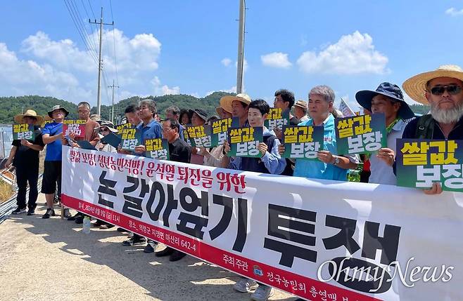 "윤석열 내리고 쌀값 올리자" 논 천평 갈아엎은 농민들