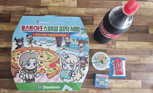 예약 시간에 딱 맞춰 피자가 왔다. 피자 박스에는 피자를 들고 있는 실리안과 키캡을 들고 있는 니나브가 그려져 있다. 역시 공식 남친, 여친이라 도미노피자 모델에 선정된 모양이다.