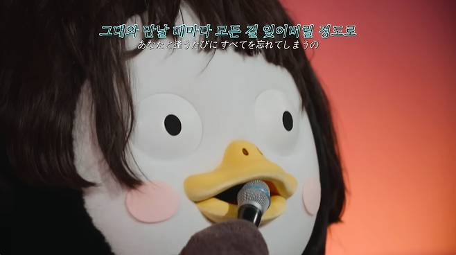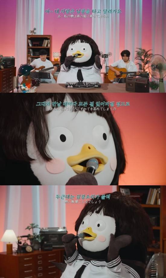 공개된 영상에서 펭수는 지난 6월 뉴진스가 일본 도쿄돔에서 진행한 팬미팅 당시 하니가 선보인 '푸른 산호초' 무대 당시 보여준 모습으로 분한 채 '푸른 산호초'를 커버했다.