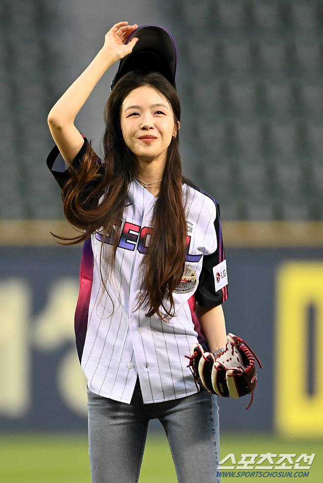9일 잠실야구장에서 열린 NC와 LG의 경기, 걸스데이 출신 배우 방민아가 시구를 하고 있다. 잠실=허상욱 기자 wook@sportschosun.com/2024.08.09/