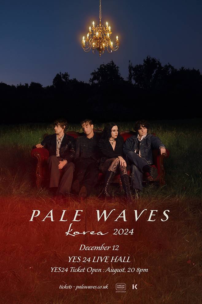 영국 맨체스터 출신의 뉴 웨이브/신스팝 밴드 페일 웨이브스(PALE WAVES)가 12월 12일 서울 예스24 라이브홀에서 첫 내한 공연 ‘페일 웨이브스 코리아(PALE WAVES Korea) 2024’를 갖는다.