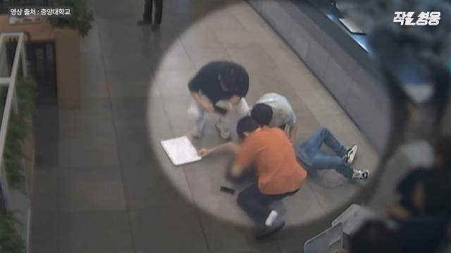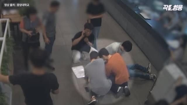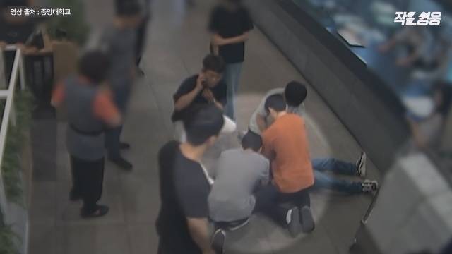 지난 7월 5일 오전 11시33분, 서울 동작구 흑석동에 위치한 중앙대학교 학생식당 안에서 식판을 들고 배식을 기다리던 한 남성이 의식을 잃고 뒤로 넘어집니다.
