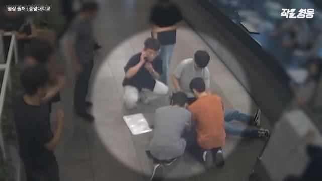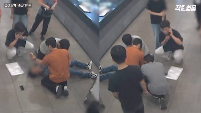 이른 점심시간. 구내식당에서 배식을 기다리던 여기 이 남성, 느닷없이 무릎을 꿇더니 의식을 잃고 뒤로 쓰러집니다. 이를 본 학생들은 누가 먼저랄 것도 없이 달려와 환상적인 호흡으로 남성을 살려냅니다.