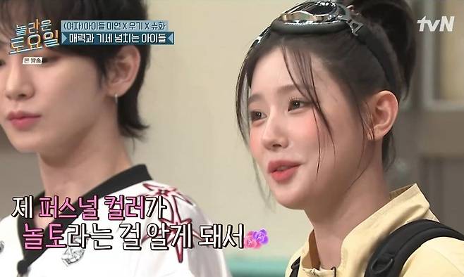 그룹 (여자)아이들 미연이 소녀시대 태연과 함께 듀엣을 부르며 '놀토'가 퍼스널 컬러임을 입증했다.