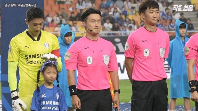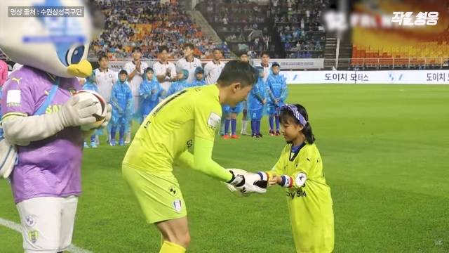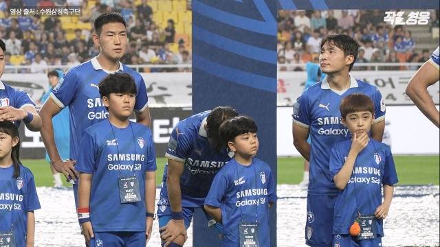 곧 다른 선수들도 주장을 따라서 하나둘 손을 올렸고, 그중 한 선수는 비에 젖은 아이의 머리를 털어주기도 했습니다. 당시 모습은 카메라에 고스란히 잡혔는데, SNS에서는 3 대 0으로 완승한 블루윙즈의 골 장면보다 이 영상이 더 화제를 모았습니다.