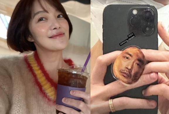공개된 사진 속 황보라는 거울 셀카를 촬영 중인 모습이다. 사진에서 단연 눈길을 끄는 것은 휴대폰 케이스에 붙은 스마트톡. 황보라는 감자에 하정우의 얼굴이 박힌 이미지를 활용해 스마트톡을 만들어 애용하고 있는 모습이다.