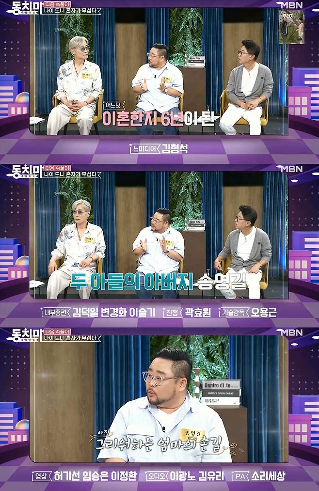 송영길은 "이혼한지 6년이 됐다"며 "아들 둘을 키우고 있다. 저희 아이들은 놀이터에서 안 놀고 엄마 또래 아줌마들을 보고 있다. 빈자리가 너무 느껴진다"고 털어놔 안타까움을 자아냈다.